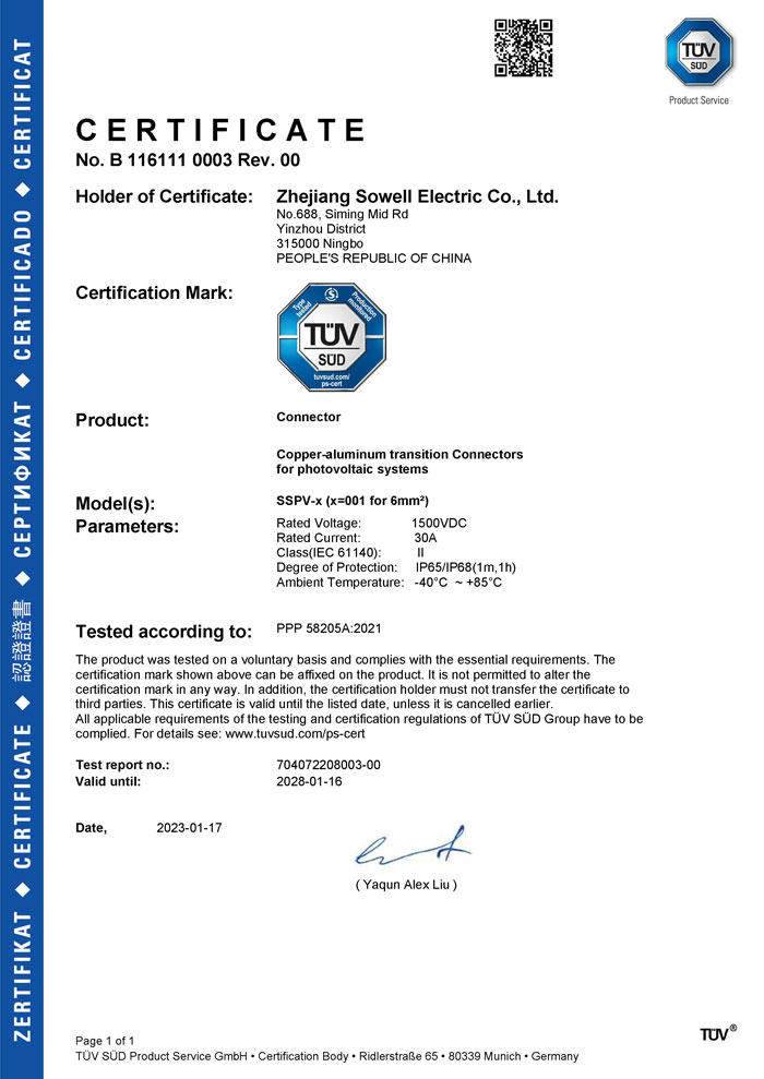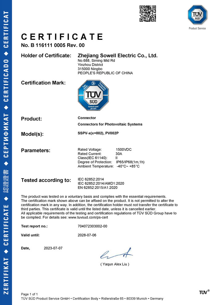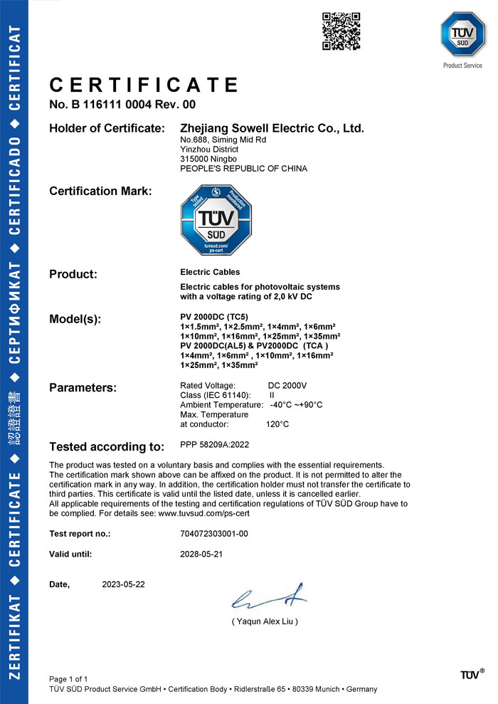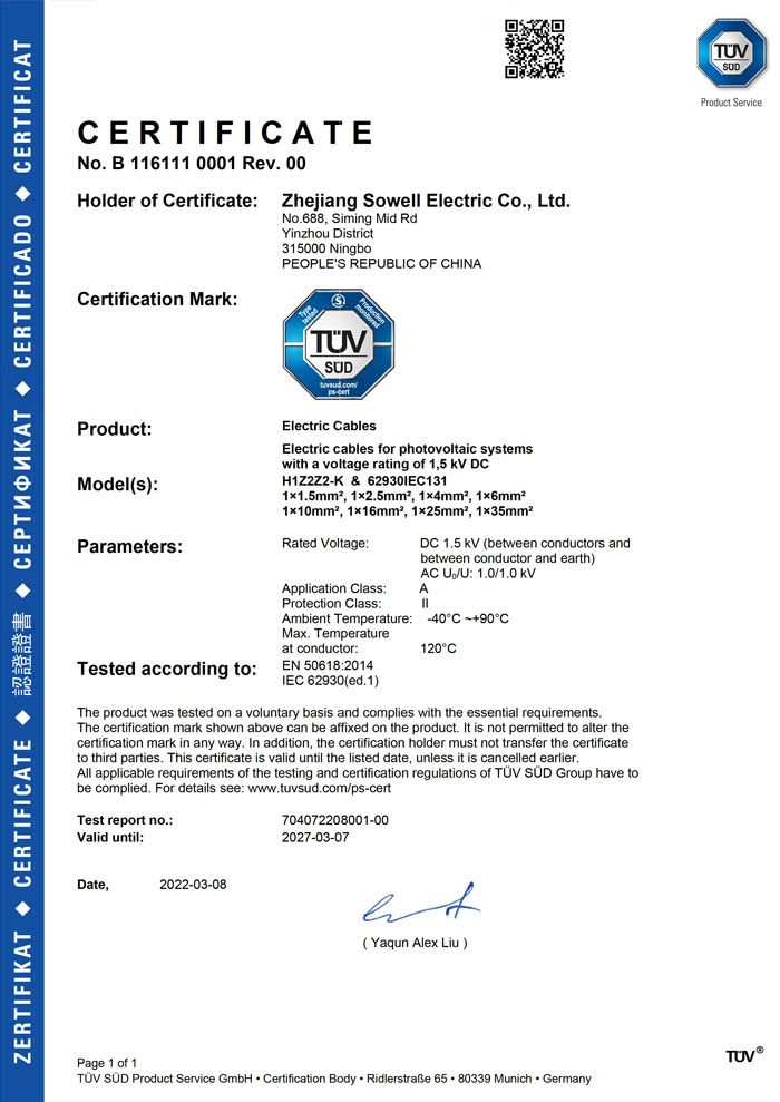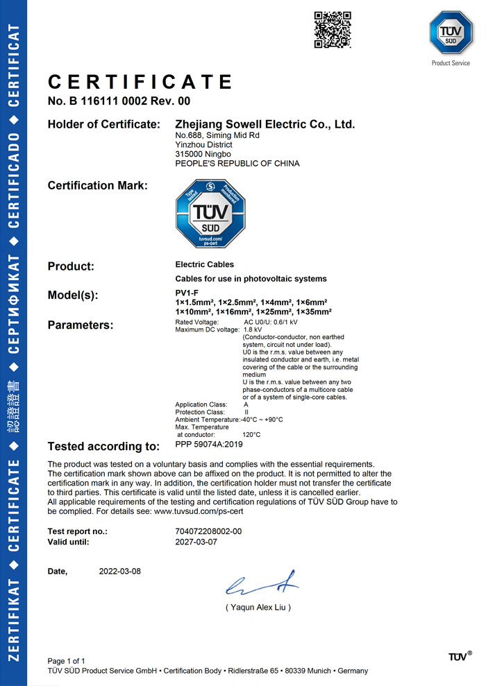 Компания Zhejiang Sowell Electric Co., Ltd. начала заниматься солнечной промышленностью в 2006 году. На начальном этапе мы участвовали в сертификации продукции по ряду стандартов, таких как 2 PFG 1161, DIN V VDE V 0126-3, EN50521, 2 PFG 1169 и т. д. В 2019 году мы расширяем экспортный рынок с нашей основной продукцией.солнечный кабельиФотоэлектрический разъем(серия H1Z2Z2-K, PV1-F, PV2000DC, TCA, SSPV-00X). Как ответственный бренд, SOWELLSOLAR дает торжественное обещание, что устойчивость к текущим нагрузкам, облучение и сшивка соответствуют требованиям. Недостатка в каждой партии нет. У нас есть система разработки продуктов и производственного обслуживания, поскольку мы работаем над тем, чтобы предоставить клиентам по всему миру превосходные продукты и услуги.Рекомендуемые продукты