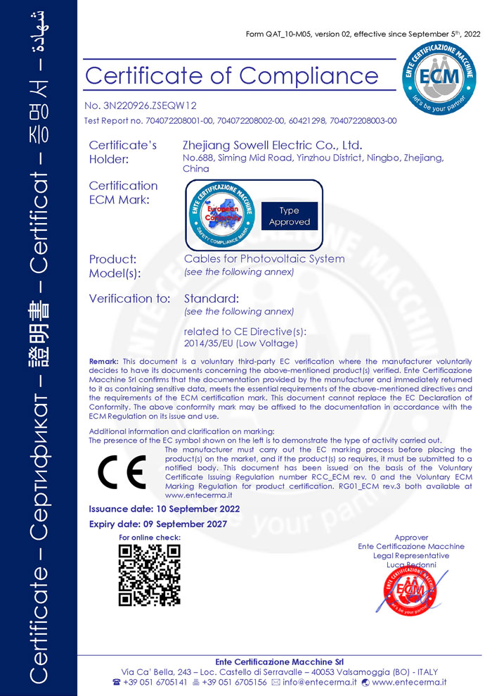SOWELLSOLAR специализируется на разработке и производстве сертифицированных фотоэлектрических кабелей и аксессуаров, в том числе:
